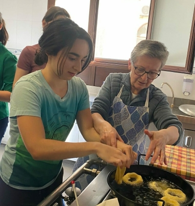 Celebramos un emotivo Vía Crucis en el patio de la Residencia, compartimos un delicioso taller de roscos típicos de Semana Santa y disfrutamos de la propuesta The Chosen en nuestra sesión de cine.